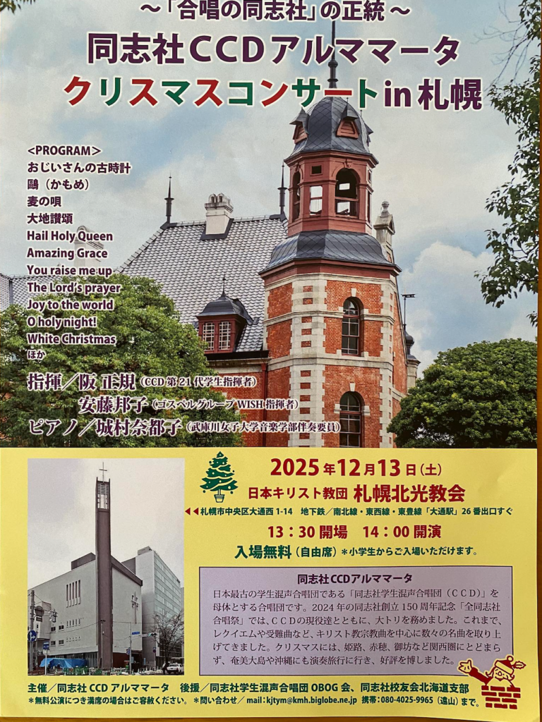 12月13日14;00から 札幌光教会にてCCDのOB・OGによる演奏会が開催されました