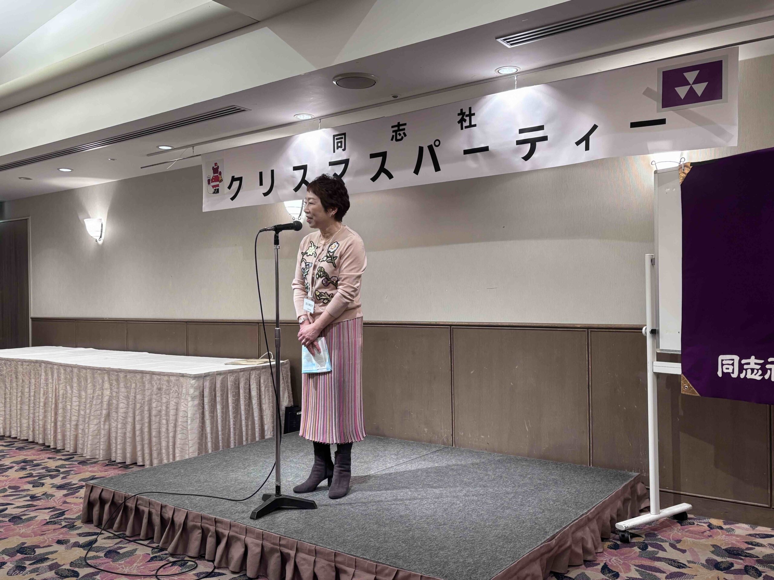 暴風雪が荒れ狂う中 交通障害による欠席者やコロナによる欠席者が続出し 近年稀に見る低出席率ではありましたが 本学からは暴風雪をかいくぐり西岡副学長にお越し頂くことが出来ました サンタが子供達にプレゼントを配り ビンゴ大会で大変盛り上がることが出来ました